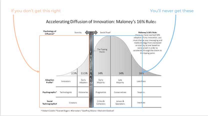 Once you've found and engaged your early adopters, the challenge shifts: How do you reach the next wave of users efficiently? Growth isn’t just about blasting content to as many people as possible—it’s about ensuring that new users come in organically, at a lower cost, and with the same enthusiasm as the first 16%.